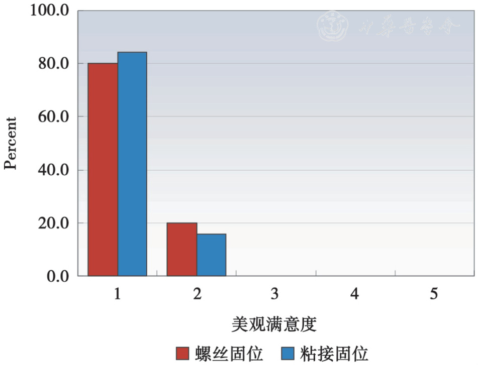 The mean peri-implant marginal bone lost in screw-retained group and cementretained group were 0.78 mm and 0.68 mm, respectively. The median values of mPLI and mSBI were both 1 in screw-retained group, and also 1 in cement-retained group. The median scores of esthetic fulfillment were both 1 in screw-retained and cement-retained group. The differences of marginal bone resorption, peri-implant soft tissue condition and patient satisfaction between two groups were statistically not significant (P >0.05).
